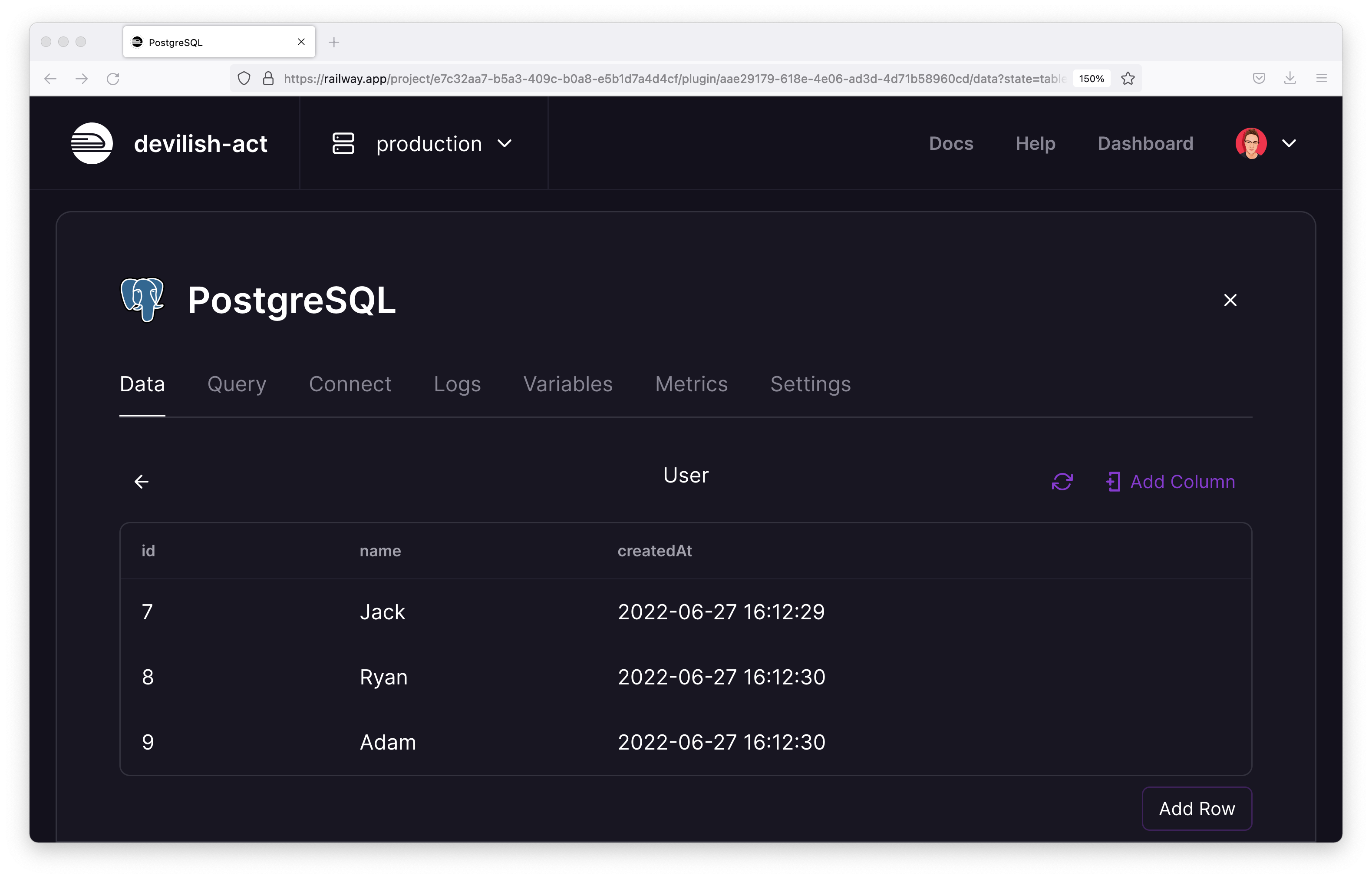 - Spun up a PostgreSQL database using Railway