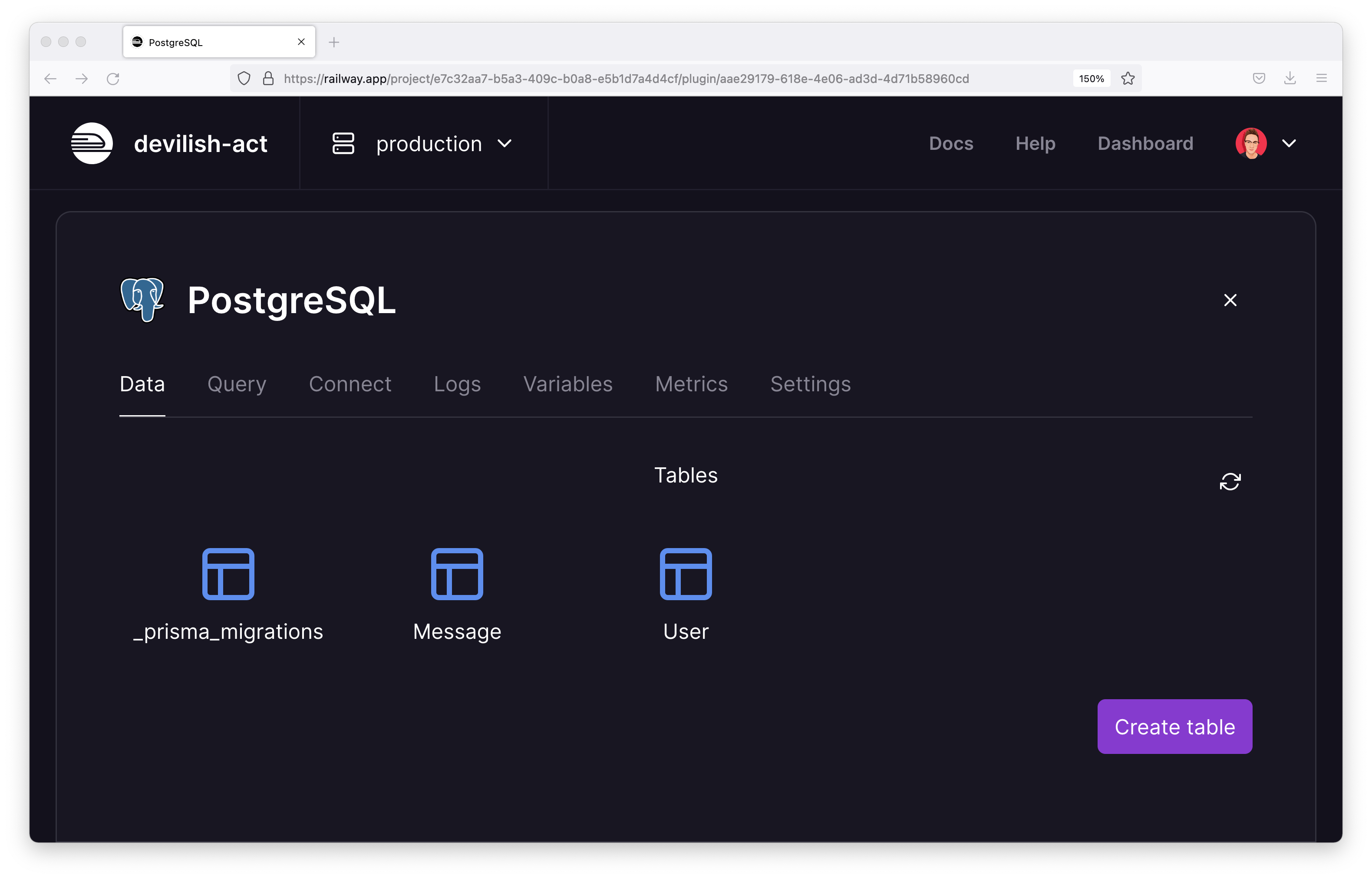 If you head back over to the Railway UI, in the Data tab you should see your tables listed. If so, the migration worked and your database is ready to be put to work!