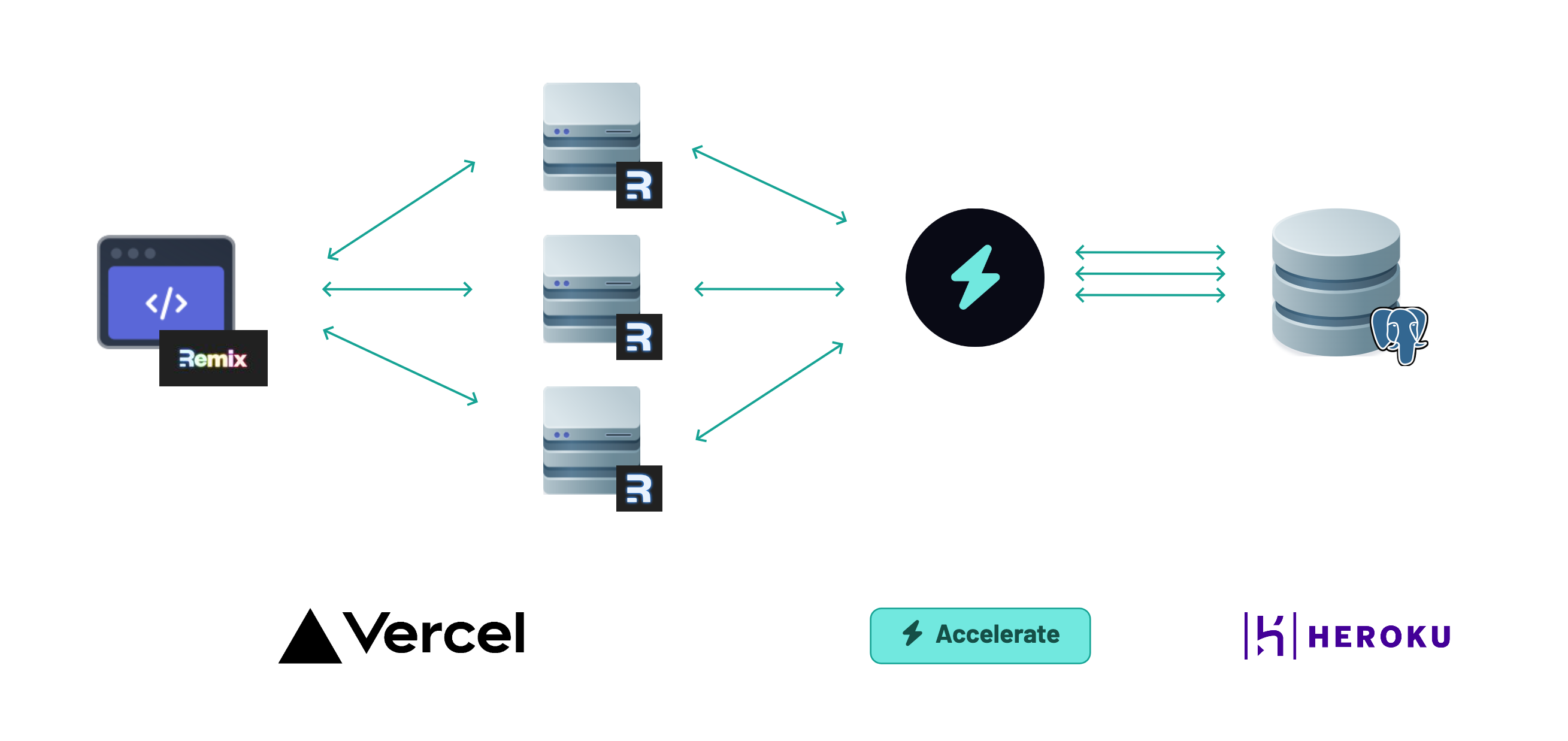 They leverage Remix’ server-side capabilities and implement the entire API layer using serverless functions, which use Prisma ORM to query the database and are deployed via Vercel.