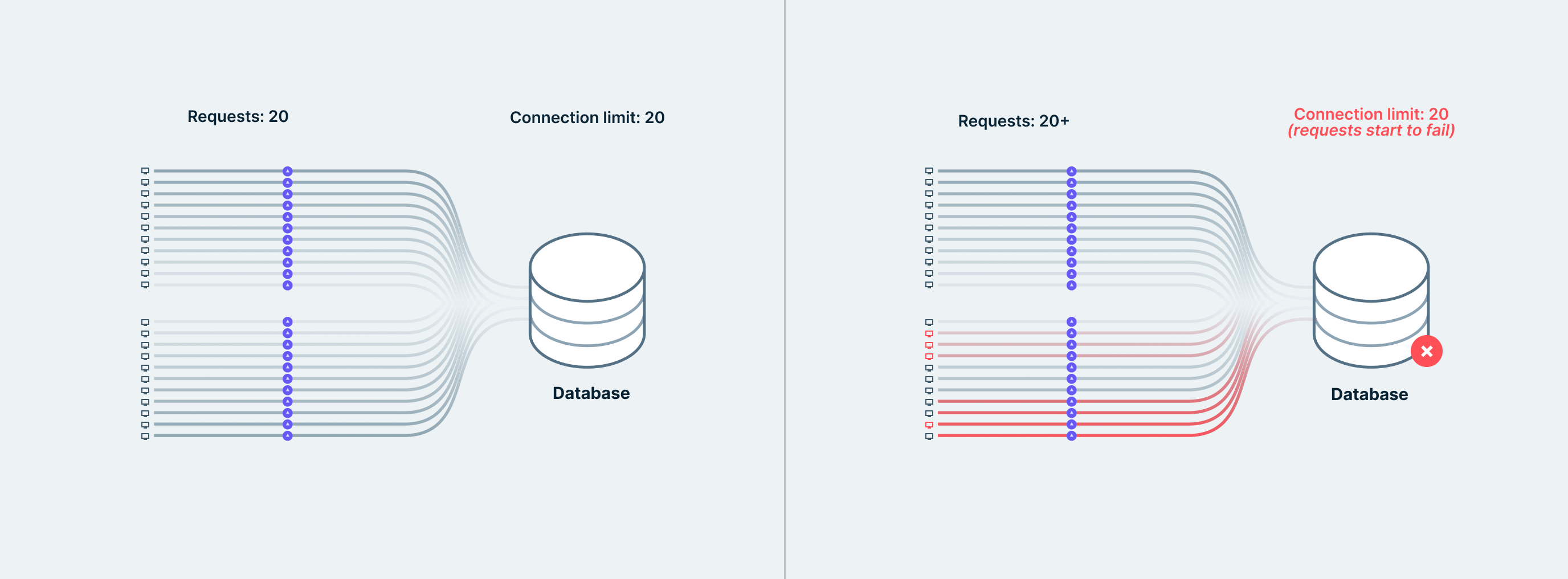 Traditional databases like PostgreSQL and MySQL typically have a database connection limit that can easily get exhausted in these situations. Once the database can't accept any new connections from newly spawned serverless functions, the requests made by the client applications start to fail.